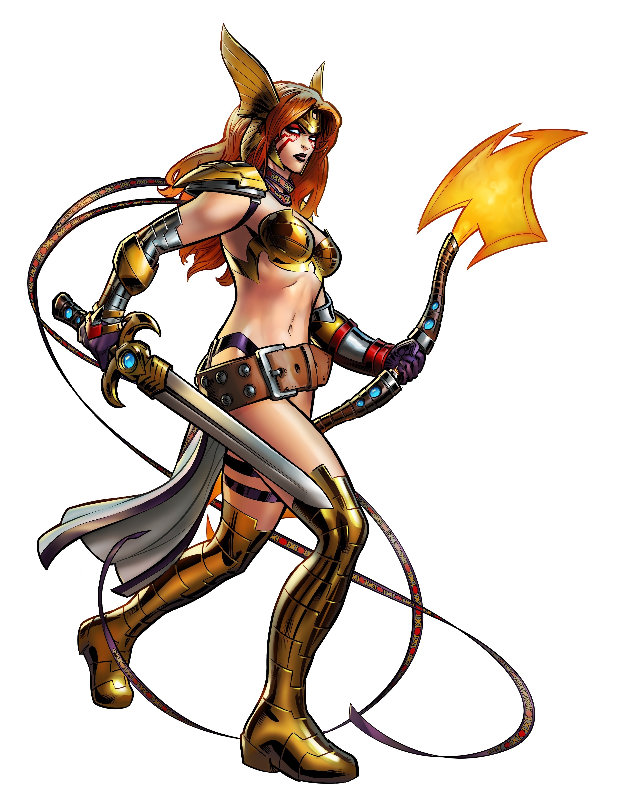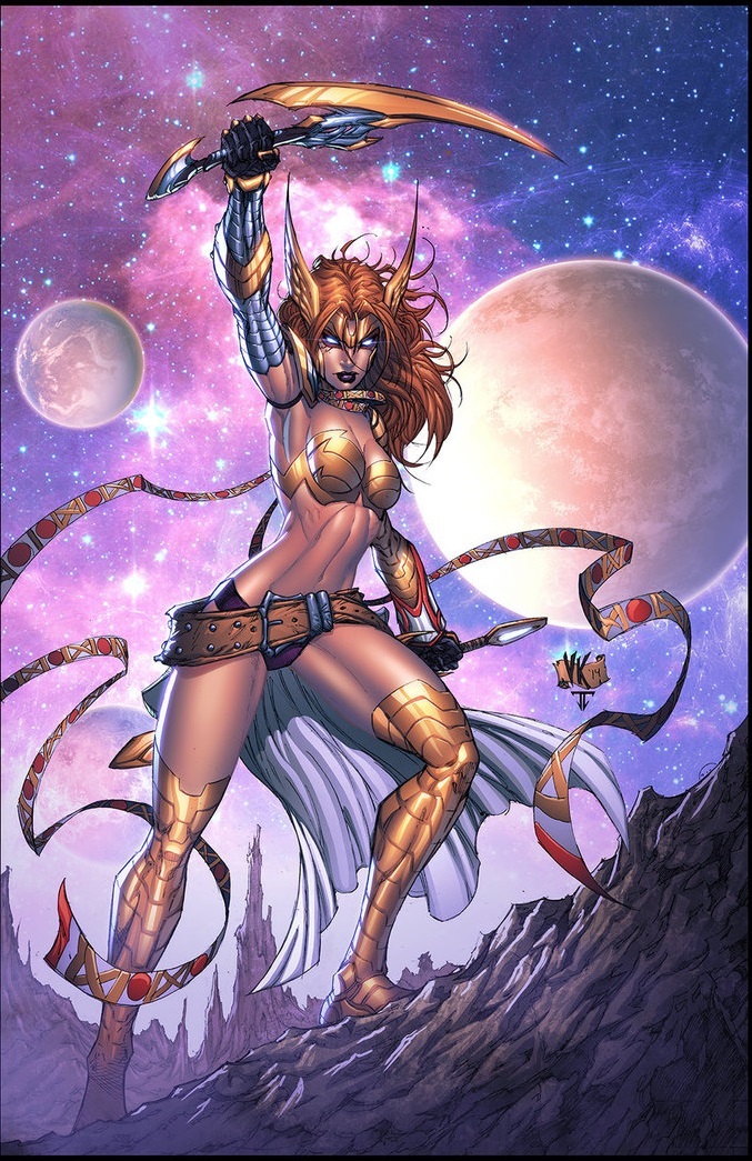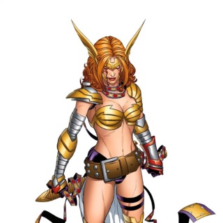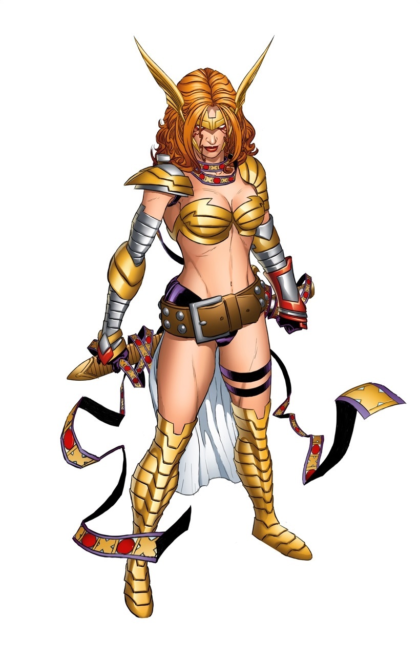 Her Bio Says: A long time ago, Asgard was at war with the Tenth Realm, Heven. In an attempt to blackmail Odin to surrender, the Queen of the Angels kidnapped Aldrif, Odin's first-born and heir to Asgard. Odin refused and witnessed the death of his infant daughter. Enraged, the All-Father banished all the Angels and sealed off Heven from the other Nine Realms. Unbeknownst to Odin and the Queen of the Angels, Aldrif survived and was raised, in secret, as a Huntress of Heven known as Angela the Wingless One, but recent events have revealed Angela's true parentage. Now shunned by the Angels and filled with an Angel's hate for Asgard, Angela seeks out a place for herself in the galaxy.