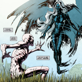 When Tefe Holland was captured and brought to Hell, Arcane attempted to use her powers to create a window to reach Earth, but in his greed he allowed her to escape. Later Arcane did indeed abscond from Hell and possess Tefe, subsequently raising an army of the dead to wage war on Swamp Thing. Despite being foiled by the Agony and the Ecstasy, emissaries from Hell, Arcane continued his relentless pursuit of revenge, possessing the corpse of General Sunderland, kidnapping Abby and using her to blackmail Tefe into growing him another body. Just as it seemed Arcane had finally won, however, the Agony and the Ecstasy caught Arcane and returned him to Hell.