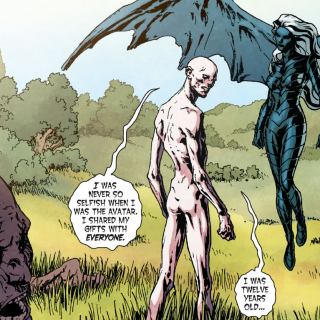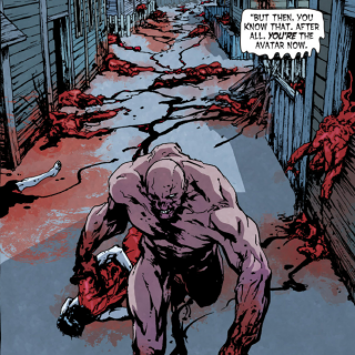 Back in 1897 in Manitoba, Canada Arcane takes the form of a young girl who seeks out help from the Swamp Thing, Old Jack Crow. Anton bursts through her skin, revealing himself and viciously attacking Crow by biting his skull and killing him. It is unseen but Anton has also killed Jacob Mullin as he is seen dragging his body. Many years later in Louisiana, 6 years before the current time in the New 52, Anton continues to kill future avatars of the Red and Green as infants in a hospital. Arcane takes the skin of Alec Holland's colleague, Dr. Ross as they toast the success of his bio-restorative formula. He returns to Alec's home that night and is attacked by his wife whom he kills and takes her skin. Arcane, hiding in his wife sets up Alec's lab to explode and watches as he jumps into the swamp in flames.