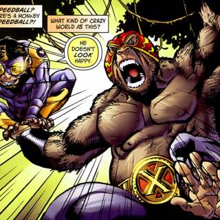 A small ape turns into a giant gorilla after he dons the Lucha Libre mask. He teamed up with Speedball, and was member of the Ape-Vengers.