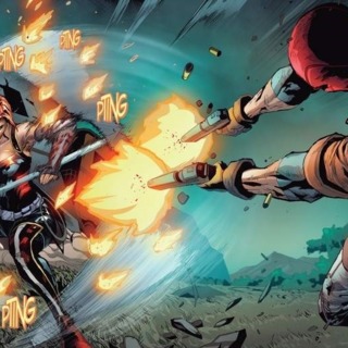 Artemis and Jason are tracking a metahuman criminal and the two head into a bar their quarry frequents to find a lead. When the bartender refuses to talk about a patron, Artemis decides to start a bar fight. As she and Jason tear up the place, Artemis hears a familiar voice, and sees Bana Amazon Akila aiming a bow and arrow at her. Shocked to see her dead friend, she freezes. Jason notices and knocks "Akila" out, revealing that it was their target using his power to take the form of someone from her memories. Concerned at how she reacted to their quarry’s powers, Jason asks about what she saw. Pouring a drink for herself, she dismisses him. When he insists, she relents and tell him about the origin of the Bana and her story.
