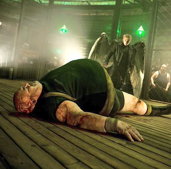 Blob defeatedBlob appears briefly in the movie as an opponent who Angel faces at the mutant fight club in Berlin. Blob is played by Gustav "Giant" Claude Ouimet.