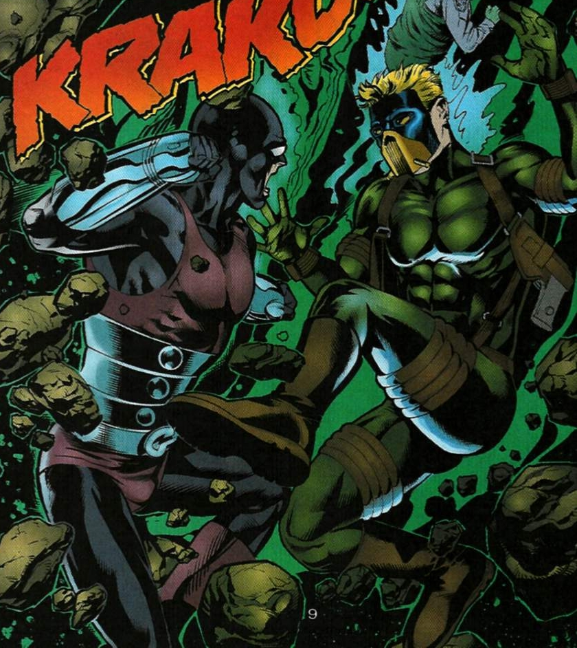 Geomancer was a member of the Injustice Society led by Johnny Sorrow. He was later killed when Icicle failed to rescue him from suspended animation induced by the Ultra-Humanite. The original Geomancer had been placed in suspended animation along with countless heroes and villians when Ultra-Humanite recreated the world in his vision. A second Geomancer showed up during the All-Stars battle with the King of Tears. This new Geomancer may be a new person taking over the mantle or the original.