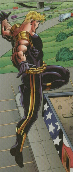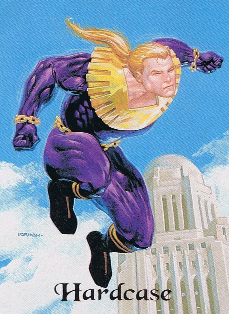 Returned to Earth, Hardcase sought out the man responsible for his misfortune, Rex Mundi. He meets with ultras formerly employed by Mundi to extract Mundi’s location. To hinder Hardcase, Mundi frames him for murder.