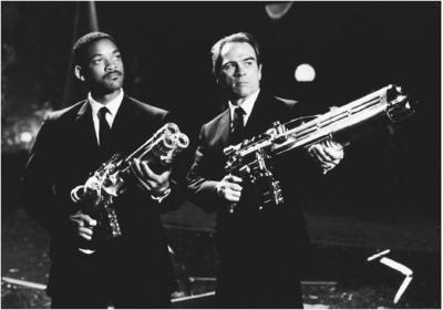 Since MIB has contacts all over the galaxy and confiscate a large number of different technologies from illegal aliens, they have a higher level of technology than the rest of the human populace. MIB Agents are generally equipped with various energy weapons from large plasma cannons, energy pistols, and the Noisy Cricket. Agents typically drive black sedans named LTD's that have acquired alien technology. Agents are equipped with various handheld tools to detect and investigate crime scenes.
