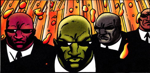 The Men in Black were enforcers to the Syndicate and were less reliable than their alien bounty hunters, though the hunters were used less often due to risk of exposure. The Men in Black were all former Special Operations members and, with the exception of a few, had no civilian identities.