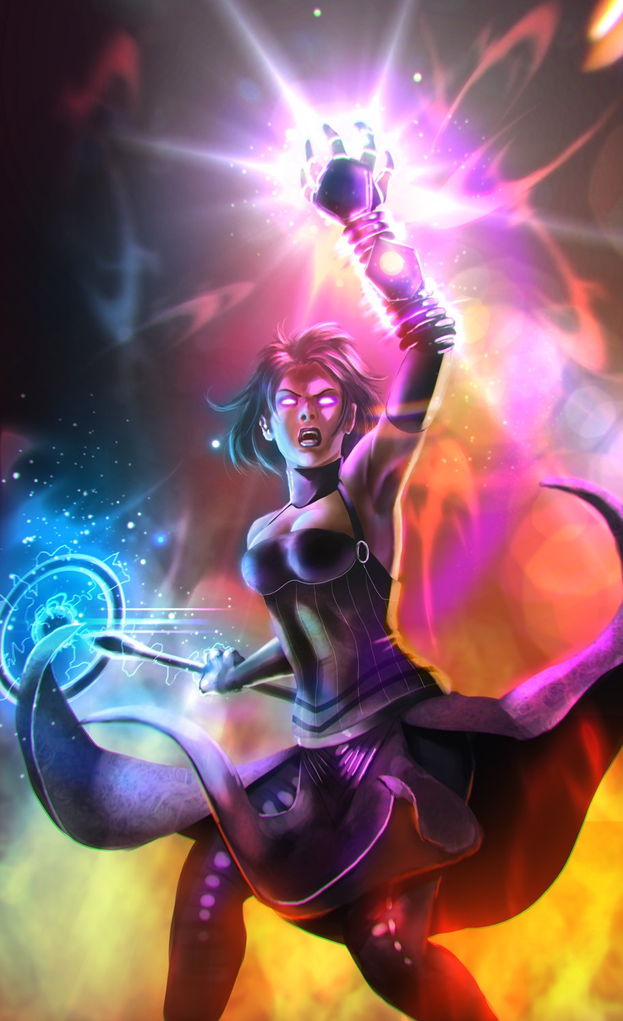 Her bio says: The Pride was an organization of six supervillain married couples, dedicated to the destruction of all of humanity... except for their own children. Those children would prove to be their undoing, becoming a group of young heroes known as The Runaways. The leader of the Runaways is Nico Minoru, daughter of two evil sorcerers, and a powerful magician in her own right. She wields the Staff of One, a mystical weapon that allows its wielder to cast almost any spell they can imagine... but only once.