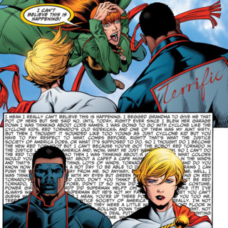 However, Power Girl was not transported there because of her location next to the tower. Later Power Girl was freed by Wonder Girl and Kon-El and they went into battle against Superboy-Prime and Luthor Jr. Superboy’s fight was taken to Mogo where Superboy-Prime beats Kal-L to death. Later Superboy-Prime would kill Kon-El and Power Girl was brought to Mogo by the Green Lanterns just in time to see her cousin die.