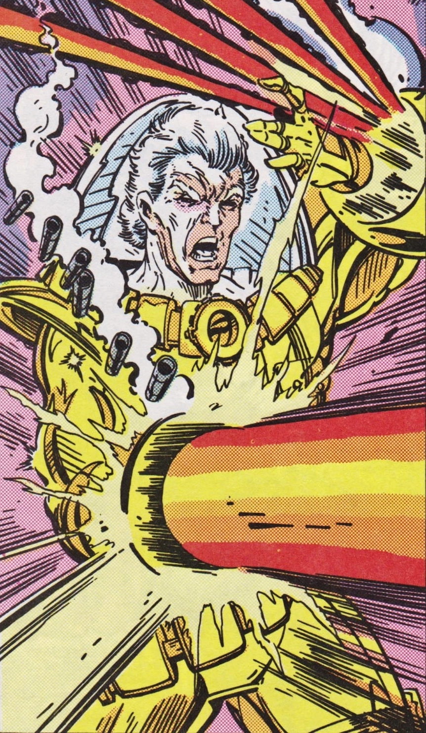 The Redeemer Armor was originally worn by Craig Saunders. He was killed in the destruction of Middletown and he was replaced by the reanimated corpse of General Ross. A more powerful and modified version of the Redeemer armor would be used by General Ross to attack the Red Hulk. However, General Ross was thought killed when the Red Hulk punches through the Redeemer's body armor. The Ross within the newer armor was a LMD and his death was staged by Ross himself (as the Red Hulk) and Bruce Banner. After the 'death of Ross', Banner had apparently repaired and modified the Redeemer armor and used it to protect himself against a brainwashed Rick Jones (as A-Bomb). Yet again later, another remodeled Redeemer armor would be used by General Fortean to attack the Red Hulk, and again unsuccessfully.
