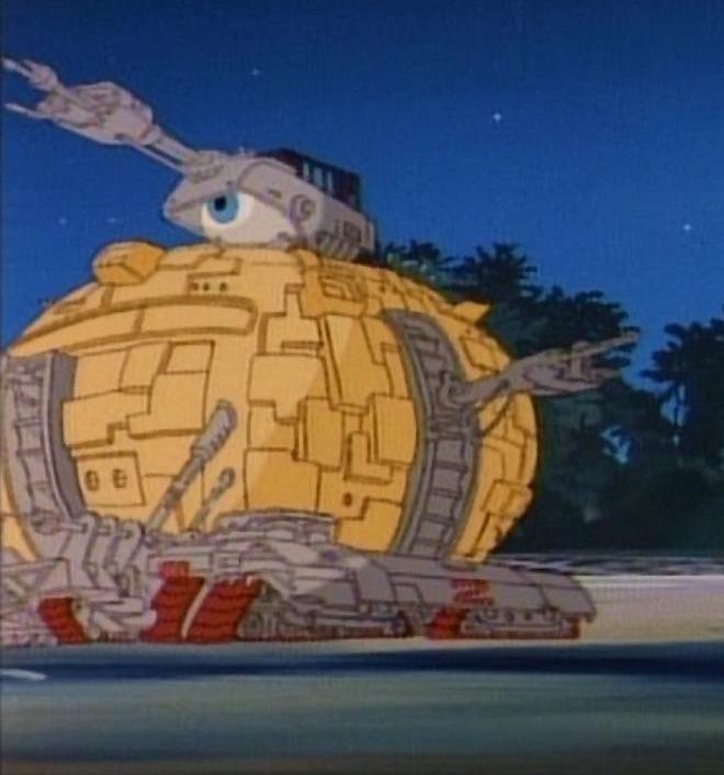 The Technodrome was created specificaly for the 1987 Teenage Mutant Ninja Turtles animated series. The war machine resembles a miniature Death Star and serves as a base of operations for show's main antagonists Krang, Shredder, Bebop, Rocksteady and their army of robotic Foot Soldiers and Krang's Rock Soldiers.