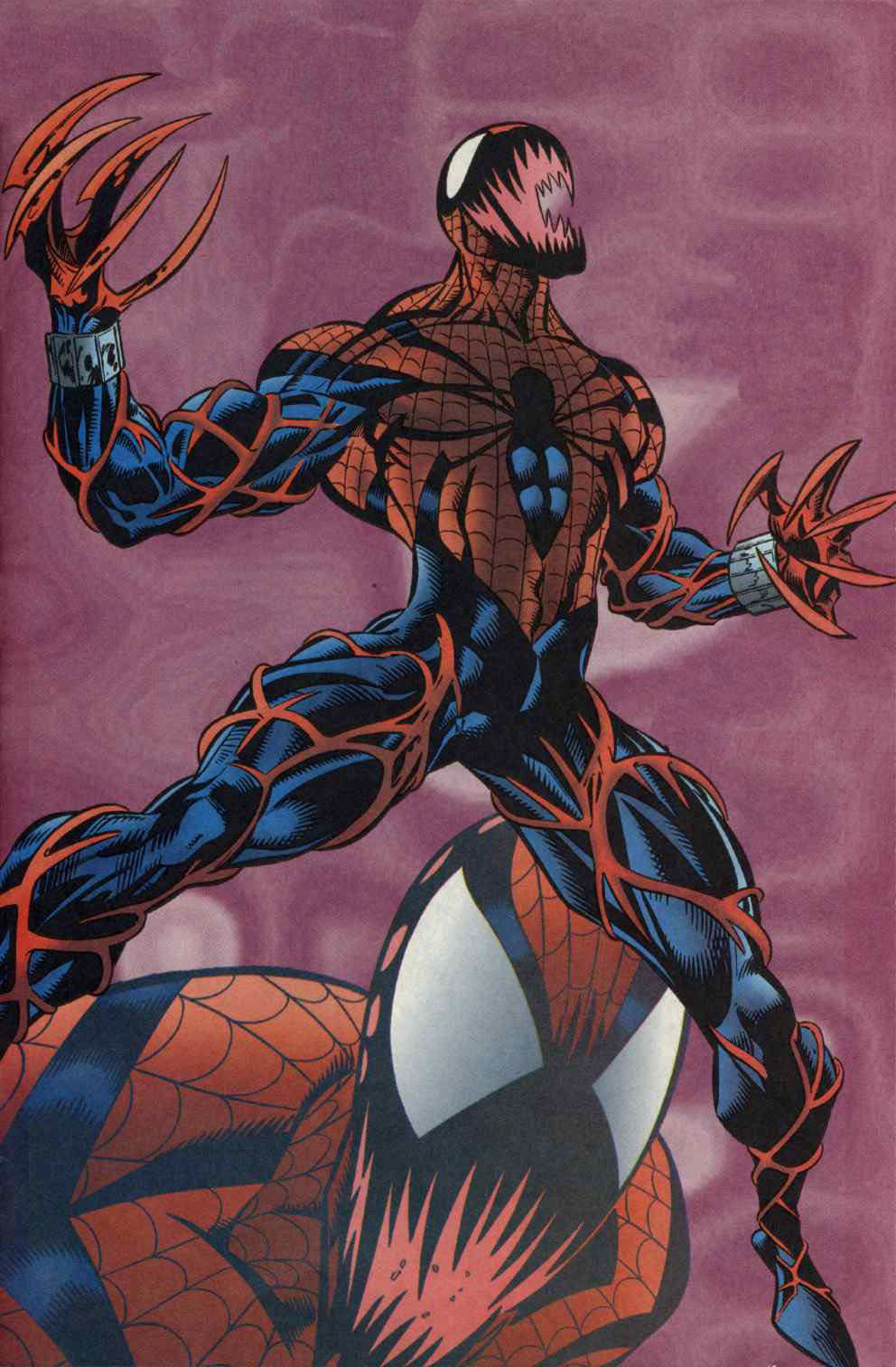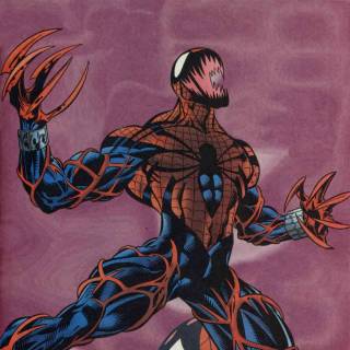 Meanwhile, Carnage's symbiote has indeed escaped, though without his host (Cletus Kassidy). After several pages of fighting with Spider-man and anyone else who gets in his way, the symbiote leaves its current host body and bonds with Ben, forming a sort of "Spider-Carnage."